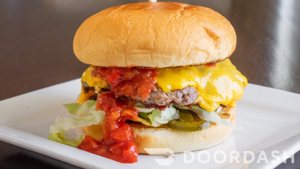 Smashed Beef patty, American cheese, corn chips, JalapeƱos, cos lettuce, salsa, guacamole, American cheese, salsa sauce, sour cream