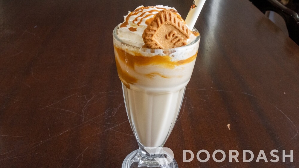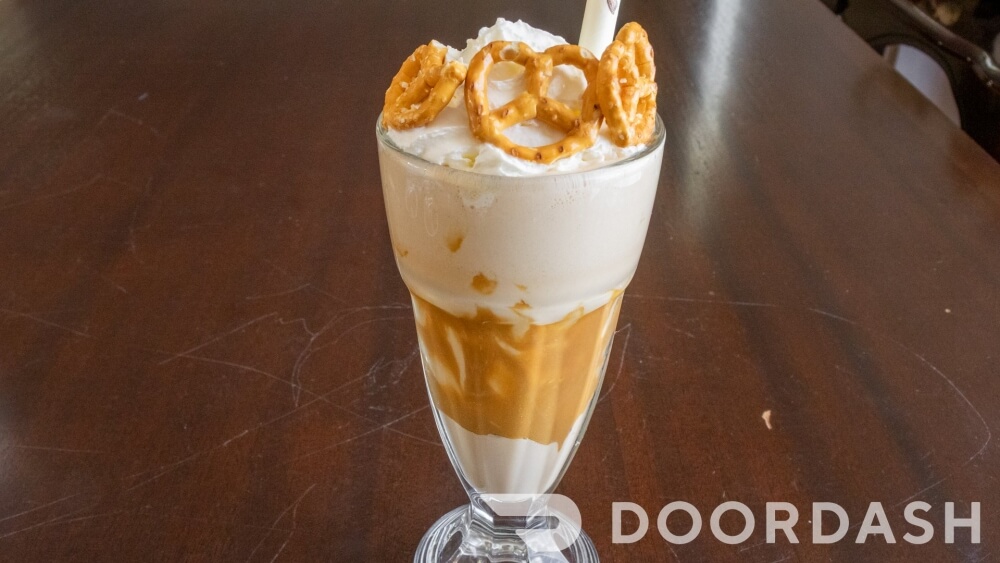 Two burgers with large chips and two signature shakes or 2 cans soft drinks