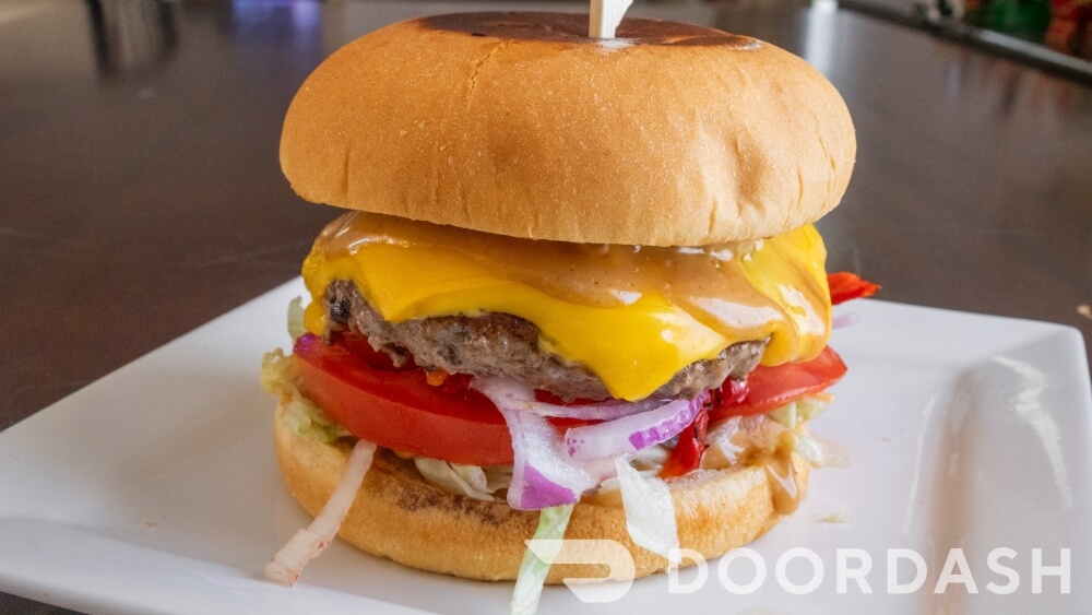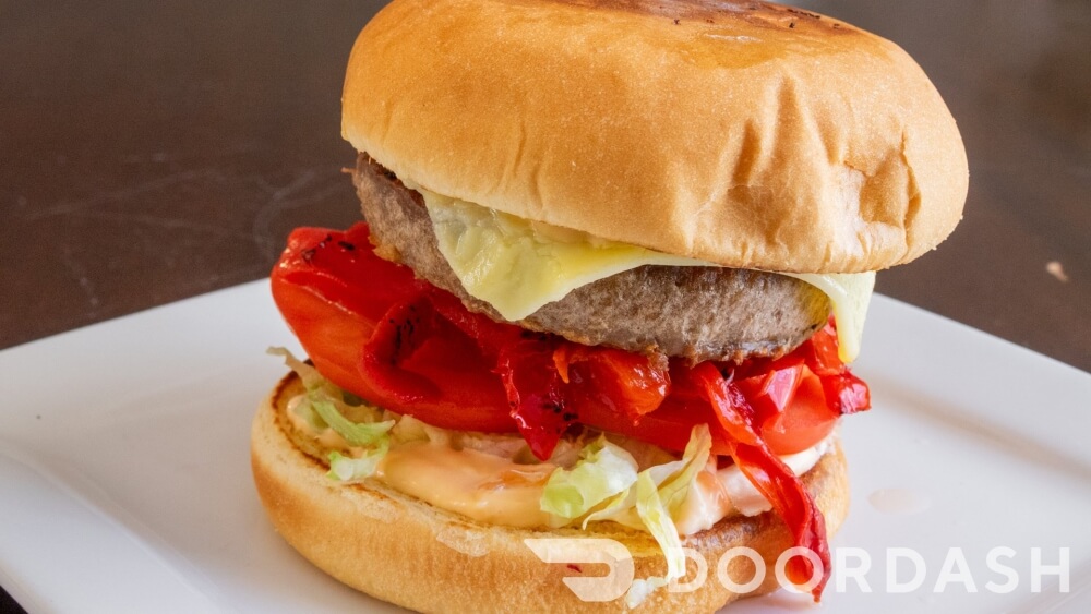 Plante-Based beef Pattie, Lettuce, tomato, Hot Cherry Peppers, vegan cheese, Calabrian Mayo