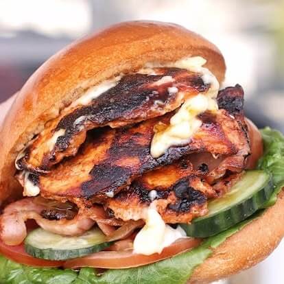 Harissa Grilled chicken, bacon, lettuce, Tomato, Spanish onions, Chipotle slaw, Citrus Mayo
