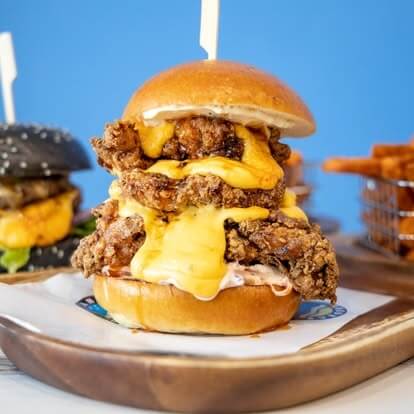 Smashed beef Pattie, American cheese, Grilled pineapple, Spanish onions, Roasted Bell Peppers, Lettuce, Teriyaki Mayo